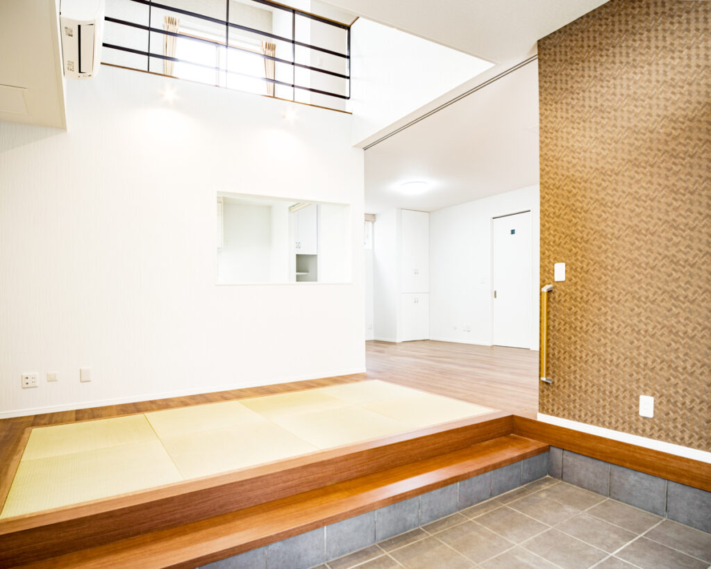 和モダンの家の内装は、畳や小上がりの配置だけでなく、仕切りの少ない空間のつなげ方も重要です。