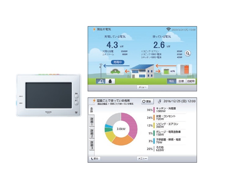 2. エネルギーを自給自足する暮らし屋根の太陽光発電や蓄電池を備え、電力を生み出し・ためて・必要なときに使うしくみ。