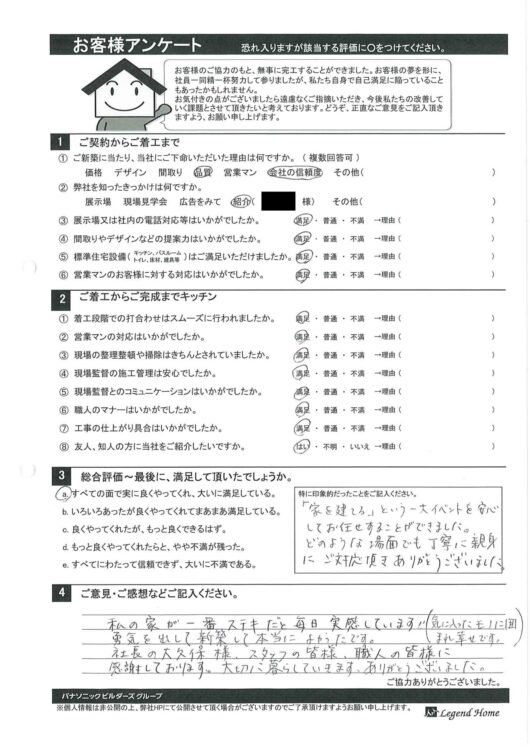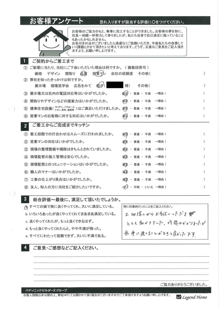 お客様アンケート 守谷市W様邸