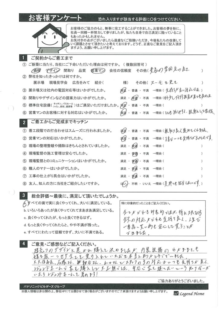 お客様アンケート 守谷市N様邸
